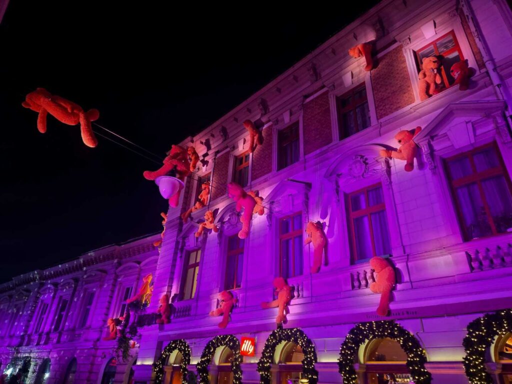 Na środku placu znajdowała się również wystawa z lodowymi misiami, które stały wokół  choinki Bożonarodzeniowej.