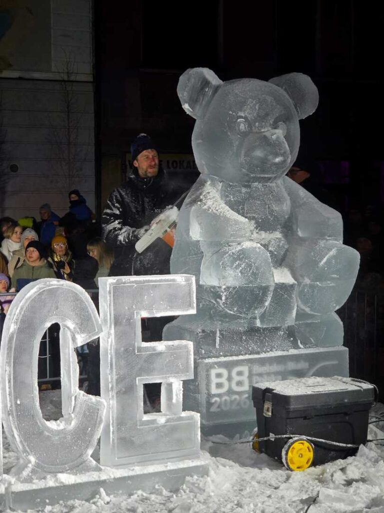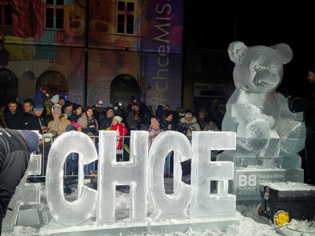 W trakcie trwania ChceMisieEmpatii na placu ustawiono specjalny podest, na którym obejrzałam pracę artystów rzeźbiarzy, mistrzów świata w rzeźbieniu w lodzie, którzy z ogromnej bryły lodu wyrzeźbili misia. Byłam zafascynowana tego typu sztuką…