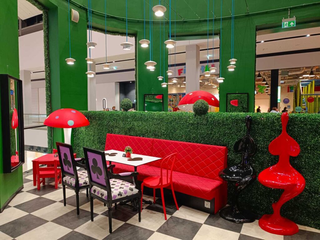 Jakiś czas temu odwiedziłam bardzo magiczne miejsce. Ściślej mówiąc pewną niesamowitą i zaczarowaną kawiarnię, która znajduje się w Krakowie, w galerii Bonarka. Kawiarnia Alicja Słodka Przygoda zachwyca od samego początku, już od przejścia przez dziurkę od klucza. Oprócz możliwości skorzystania z szalonego menu i wypicia pysznej gorącej czekolady przy stoliku w kształcie filiżanki jest to również miejsce idealne do robienia instagramowych zdjęć. I tak można zrobić sobie zdjęcie z olbrzymim muchomorem. Można usiąść na gigantycznym tronie, czy też zrobić sobie foto przy specjalnej ściance. Dekoracje i wystrój kawiarni ściśle nawiązują do bajki Alicja w Krainie Czarów.