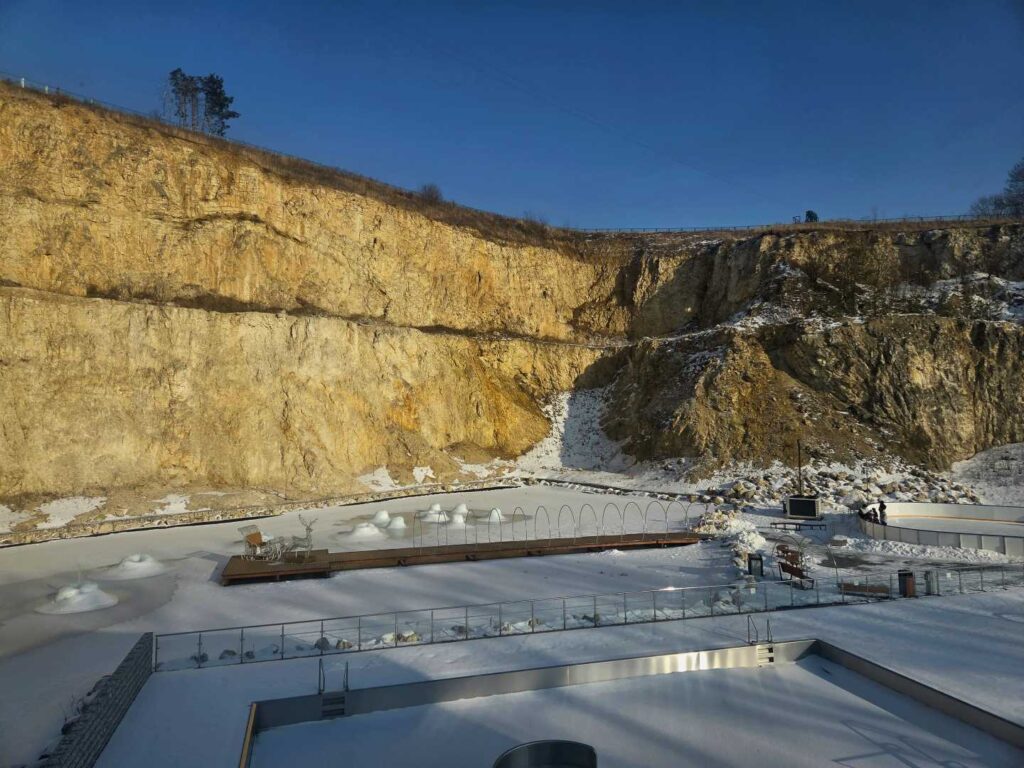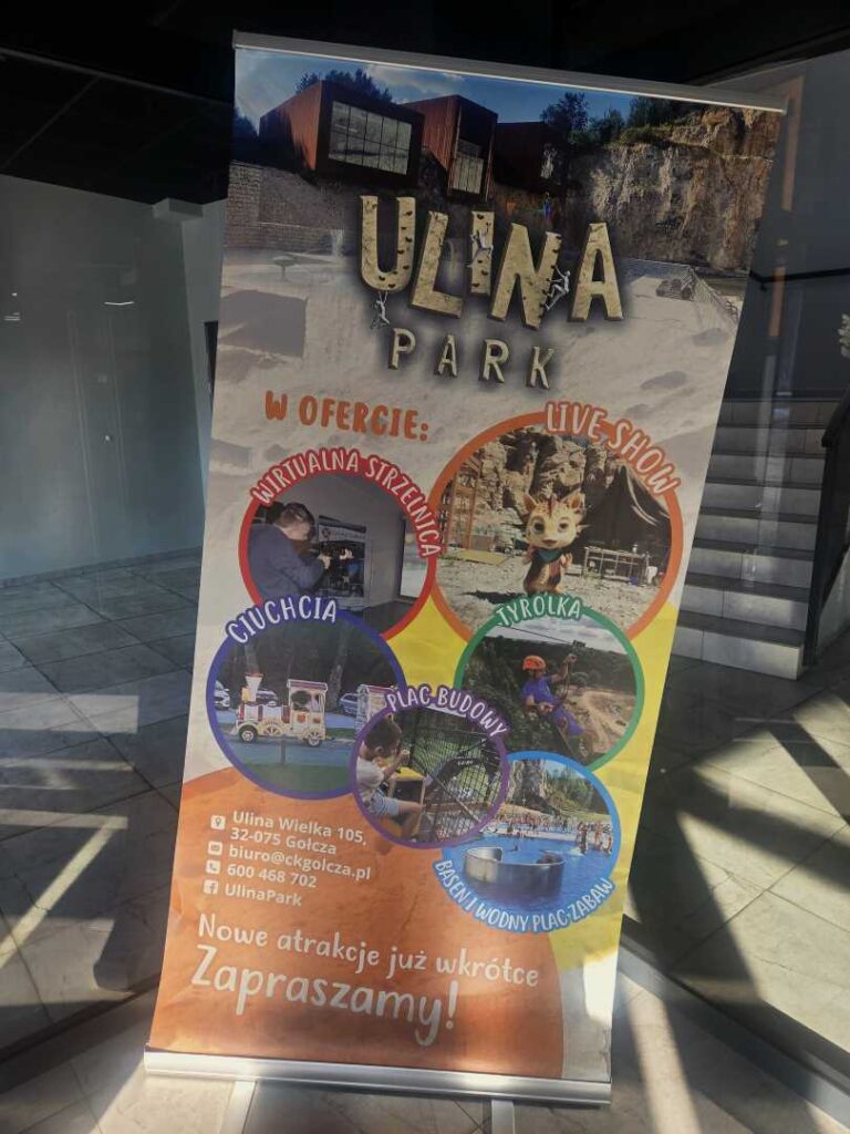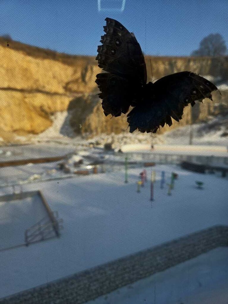 Zacznę od tego, iż Motylarnia w Ulinie znajduje się na terenie Ulina Park, który wybudowano na dnie nieczynnego już kamieniołomu w Ulinie Wielkiej. Takie położenie dodaje niesamowitego uroku. Stojąc przed olbrzymim oknem, można zobaczyć pionową ścianę, z której jeszcze niedawno pozyskiwano wapień. Na terenie Ulina Park, oprócz Motylarni, funkcjonuje restauracja i sklepik. Latem czynny jest basen a w zimie lodowisko. Znajduje się tutaj również plac zabaw dla dzieci oraz miasteczko rowerowe. Można też skorzystać z tyrolki.