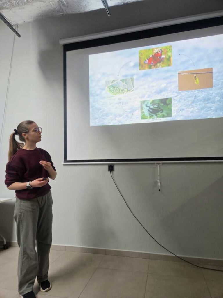 Ciekawym elementem wykładu był moment, kiedy mogłam przez mikroskop obejrzeć różne elementy motyla. Mikroskopów było kilka i na każdym znajdowała się inna część motyla. Największym zaskoczeniem dla mnie była informacje, że motyle przed zimą odlatują do ciepłych krajów. Nie spodziewałam się, że tak małe owady mogą lecieć tak daleko.
