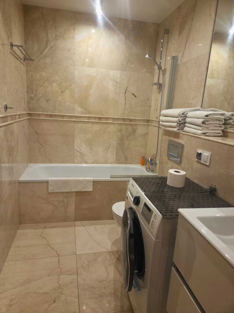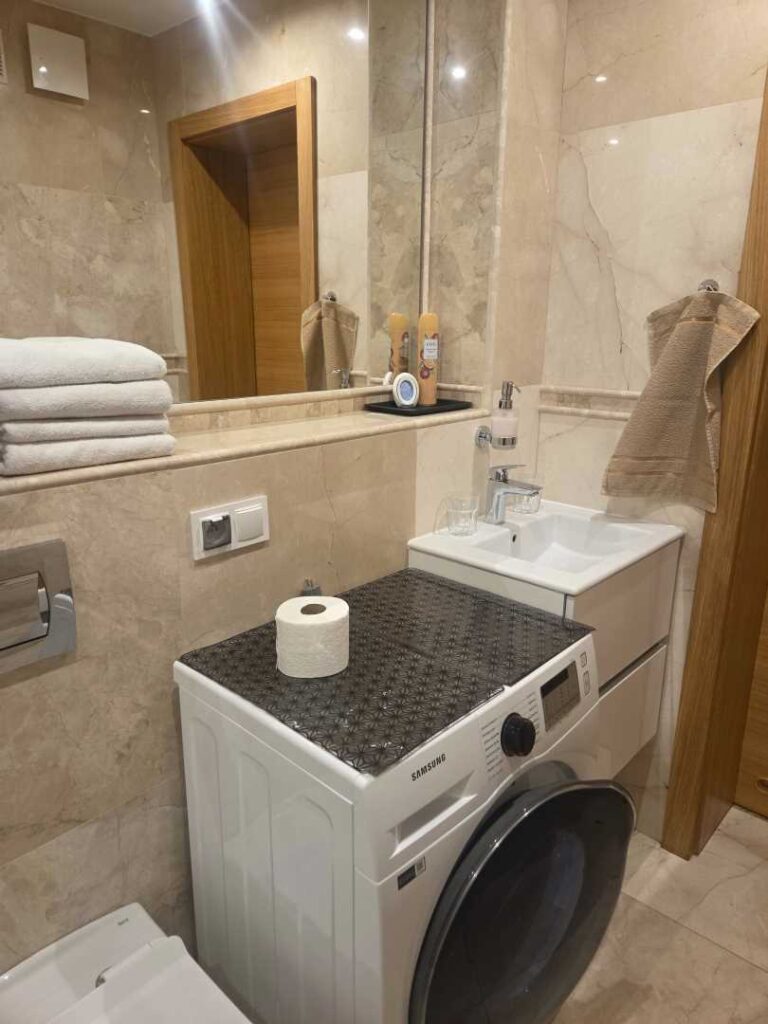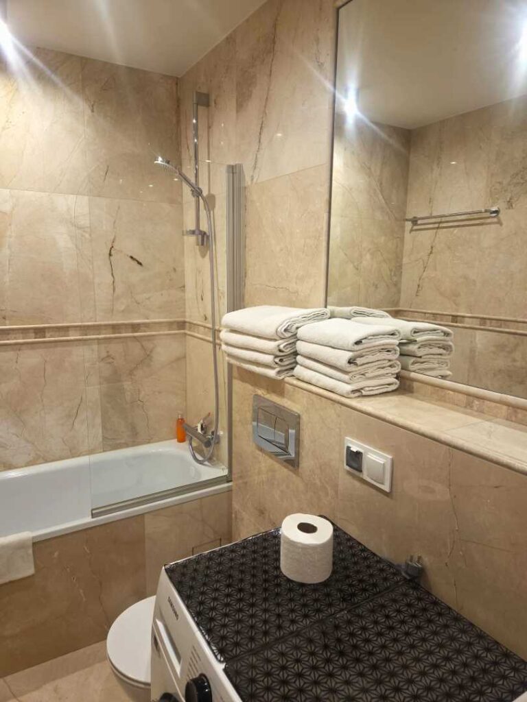 Nasz apartament znajdował się na parterze i składał się z dwóch sypialni, bardzo dobrze wyposażonego aneksu kuchennego i łazienki. Apartament był bardzo przestronny, czysty i schludny. Znajdowało się w nim wszystko, co było nam potrzebne do naszego kilkudniowego pobytu.