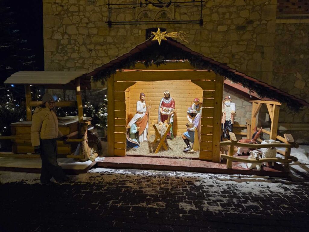 Przejeżdżając przez Rynek w Zatorze, zauważyłam bardzo ciekawą szopkę. Znajduje się ona przy Kościele św. Wojciecha i św. Jerzego. Może i nie jest ona za duża, ale znajdujące się w niej figury są dość dużych rozmiarów, przez co szopka wydaje się bardzo realistyczna. Ciekawe jest to, że Szopka Bożonarodzeniowa w Zatorze znajduje się na zewnątrz, więc każdy może ją obejrzeć kiedy tylko ma ochotę, zwłaszcza że Kościół jest zamknięty.