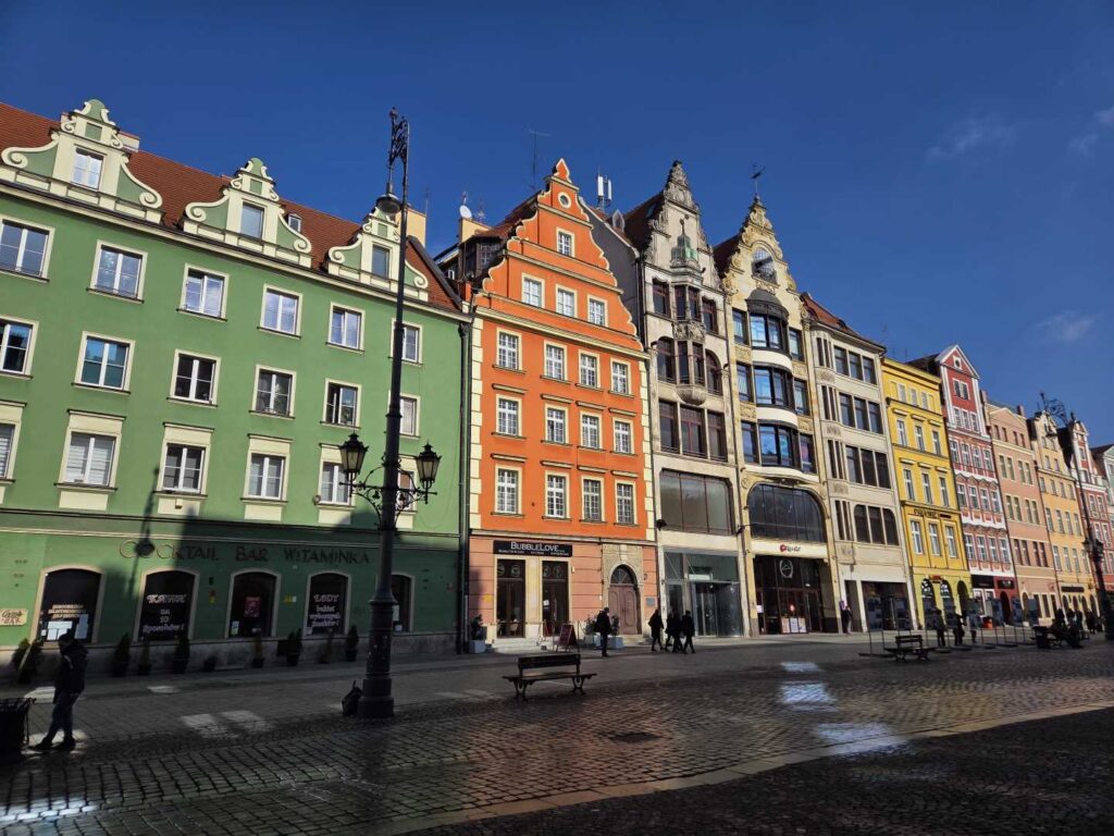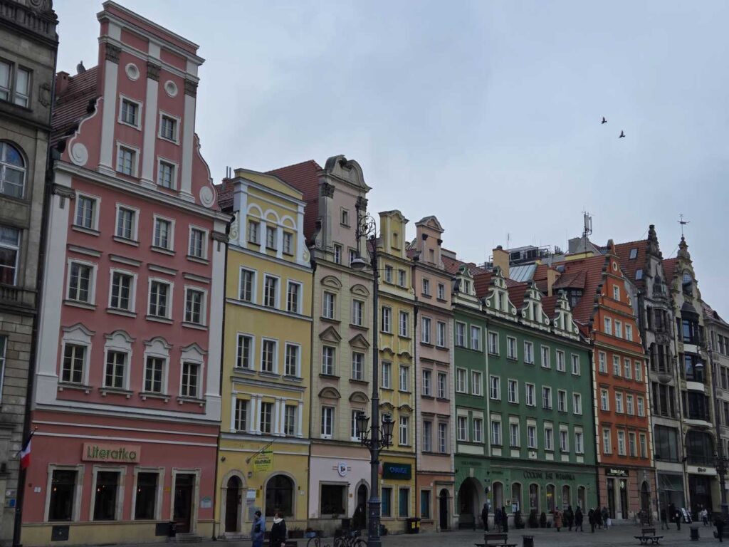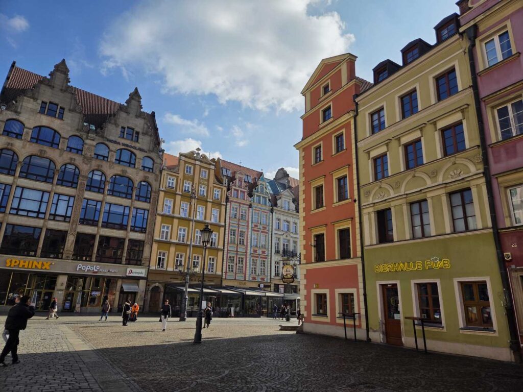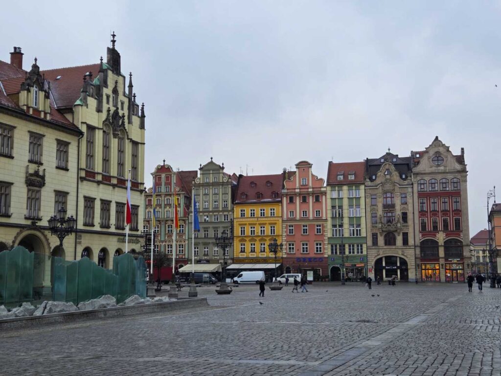 Rynek wrocławski otaczają piękne różnokolorowe kamienice. Kamienice budowano w różnych epokach na przestrzeni wieków i wybudowane są w różnych stylach. Na środku Rynku mieści się Stary i Nowy Ratusz oraz kilka kamienic. Warto nadmienić, że Stary Ratusz we Wrocławiu jest jednym z najlepiej zachowanych ratuszy w Polsce. Rozbudowywany przez prawie 250 lat robi naprawdę duże wrażenie. Obecnie mieści się w nim muzeum miejskie, którego ratusz jest głównym eksponatem. Przed Starym Ratuszem znajduje się pomnik Aleksandra Fredry, zupełnie jak pomnik Adama Mickiewicza na Rynku w Krakowie.